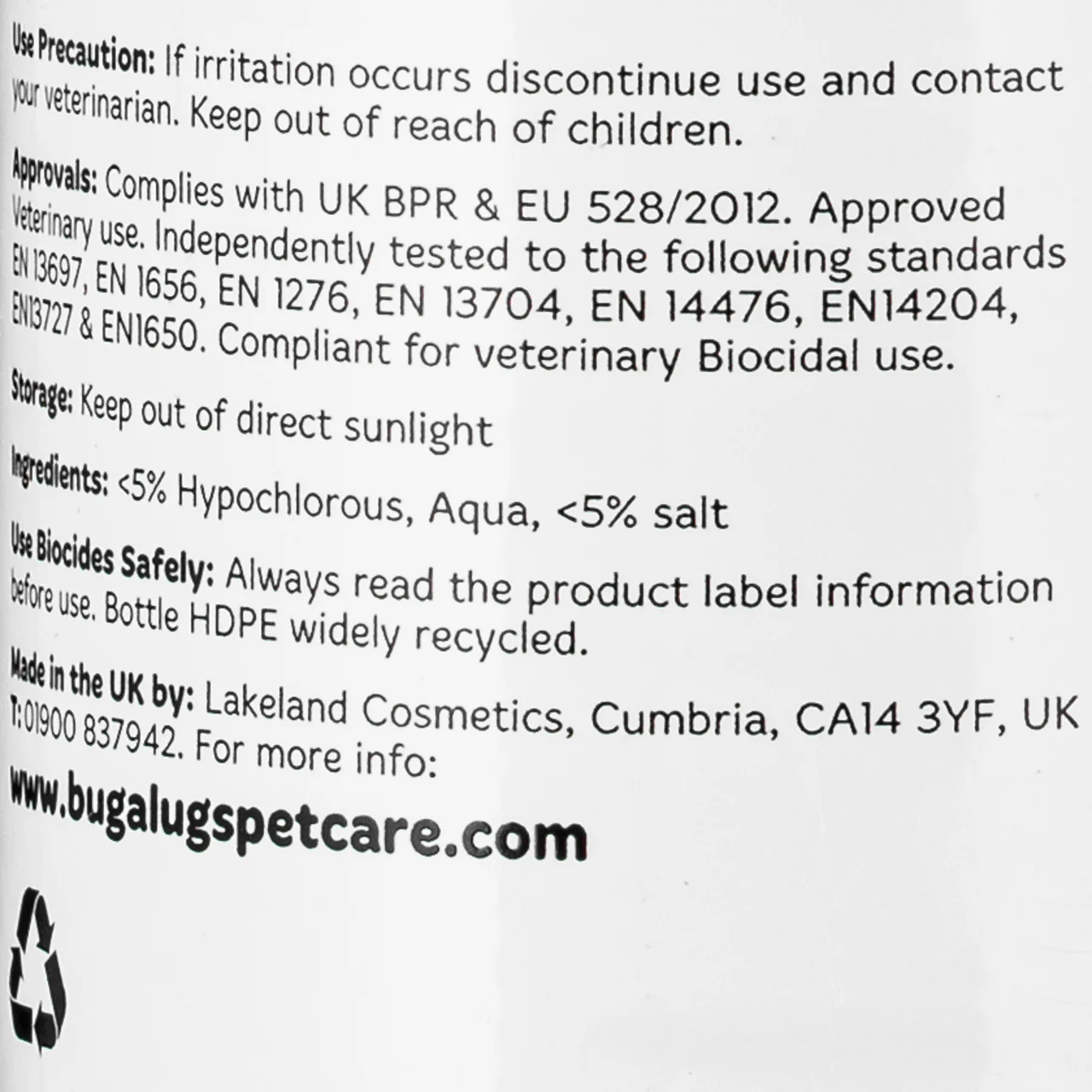 Bugalugs antiseptinis pirmosios pagalbos purškalas yra hipoalerginis antiseptikas šunims ir katėms, naudojantis hipochloro rūgštį, skirtas smulkių žaizdų ir odos sudirgimų valymui bei gijimui.